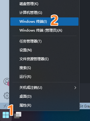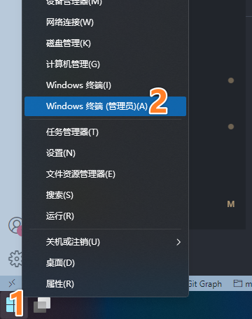 首先,对着开始按钮单击右键,点击 Windows 终端 (管理员),如果没有这个选项,请选择 Windows PowerShell (管理员)