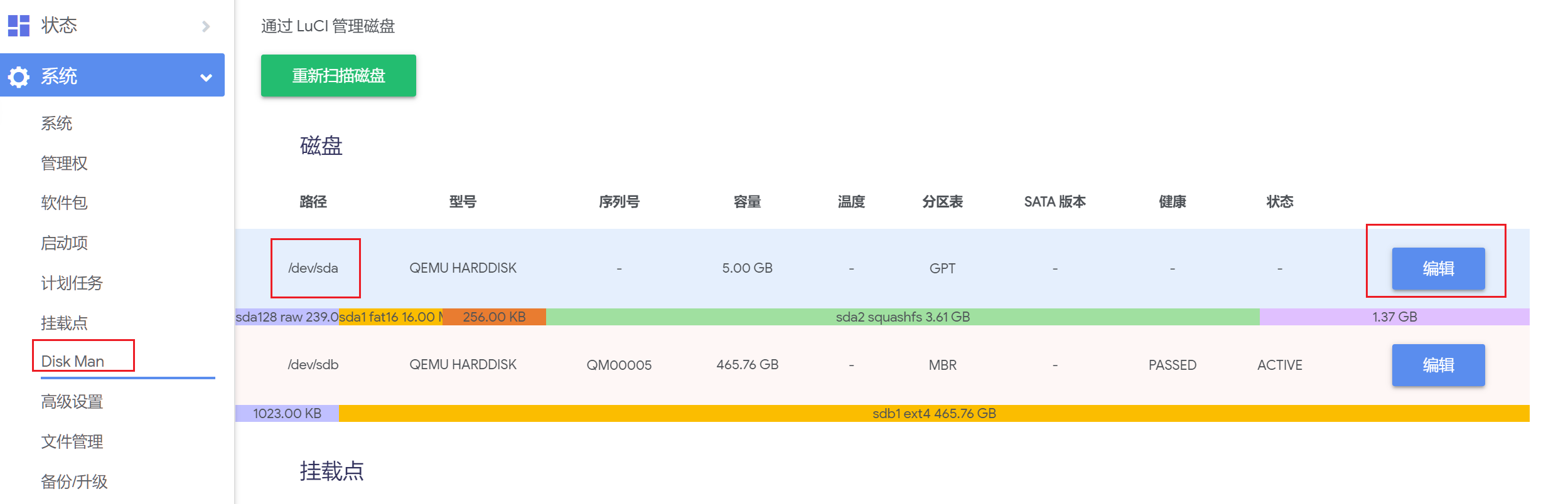 Openwrt扩展分区扩展分区先扩展新分区 虚拟机用户建议单独虚拟一个磁盘用于Openwrt存储数据,和固件所在的磁盘分开. 下一步前,如果已经有启用Docker,必须先停用,并卸载已挂载的/opt 否则会挂载失败 !!